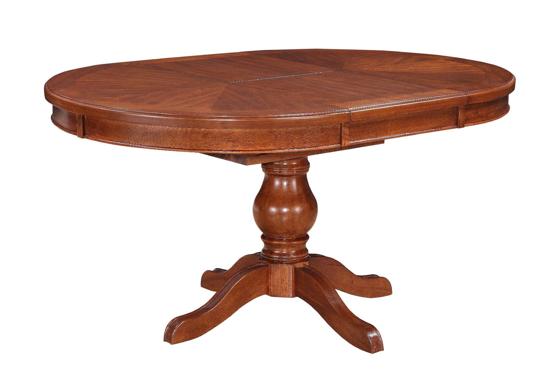 A Pedestal Dining Table Adds Country EleganceDurable and great looking, this Pedestal dining table will add elegance to your dining room. The set is stained in an Antique Honey Oak finish for a beautiful and versatile look that will go with many different decor styles. A solid wood pedestal base keeps the oval table sturdy and stable, with an 18 butterfly leaf that extends when you have company over. This table measures 42 inches wide, by 42-60 inches long, by 30 inches high. Read more
