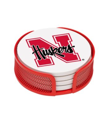 Coasters. Web exclusive! If you love the Cornhuskers this coaster set is for you. Perfect for your living room, dining room or rec room, this four-piece set is a great way to show your school spirit and Huskers pride. Set of 4 absorbent coasters are oversized to catch more drips Cork backed to protect furniture Comes with a metal mesh holder Size: 4.25" in diameter Set weighs approximately 1.5 lbs. Imported Read more
